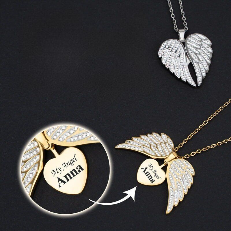 The heart inside the wings can be engraved with the name, initials or even a photo of a loved one - making this necklace a truly unique and personalized gift.
